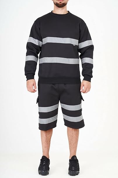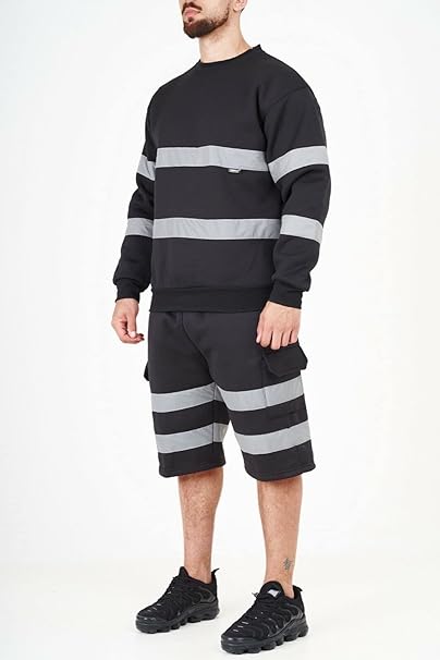 Men’s Hi Vis Work Safety Fleece Jumpers Two Tone Crew Neck Sweatshirt Security Workwear Pullover Top