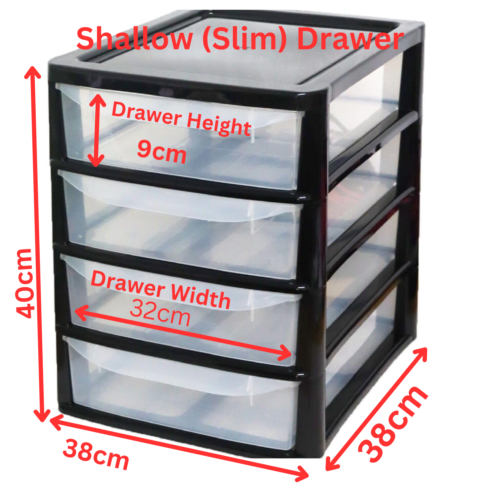 PLASTIC STORAGE DRAWERS 4 TIER A4| SMALL CLEAR BLACK TOWER UNIT | OFFICE DESKTOP TABLETOP ORGANISER HOME SCHOOL BEDROOM LIVING ROOM | 38 cm HEIGHT, 34 cm DEPTH, 28 cm WIDTH